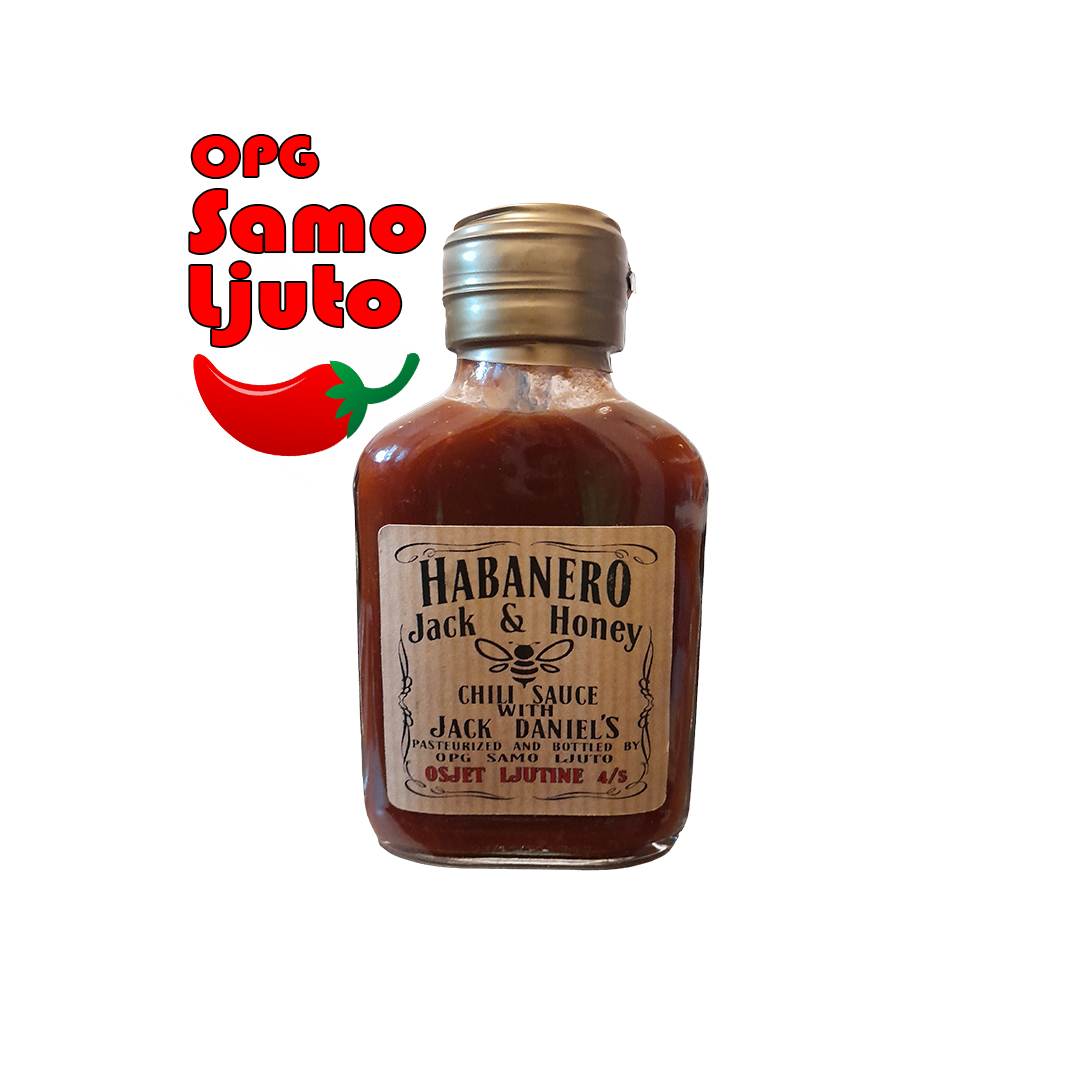 Habanero Jack chili umak kombinira žestinu crvenog ili chocolate habanera s bogatim, karamelno-dimljenim karakterom Jack Daniel’s viskija.