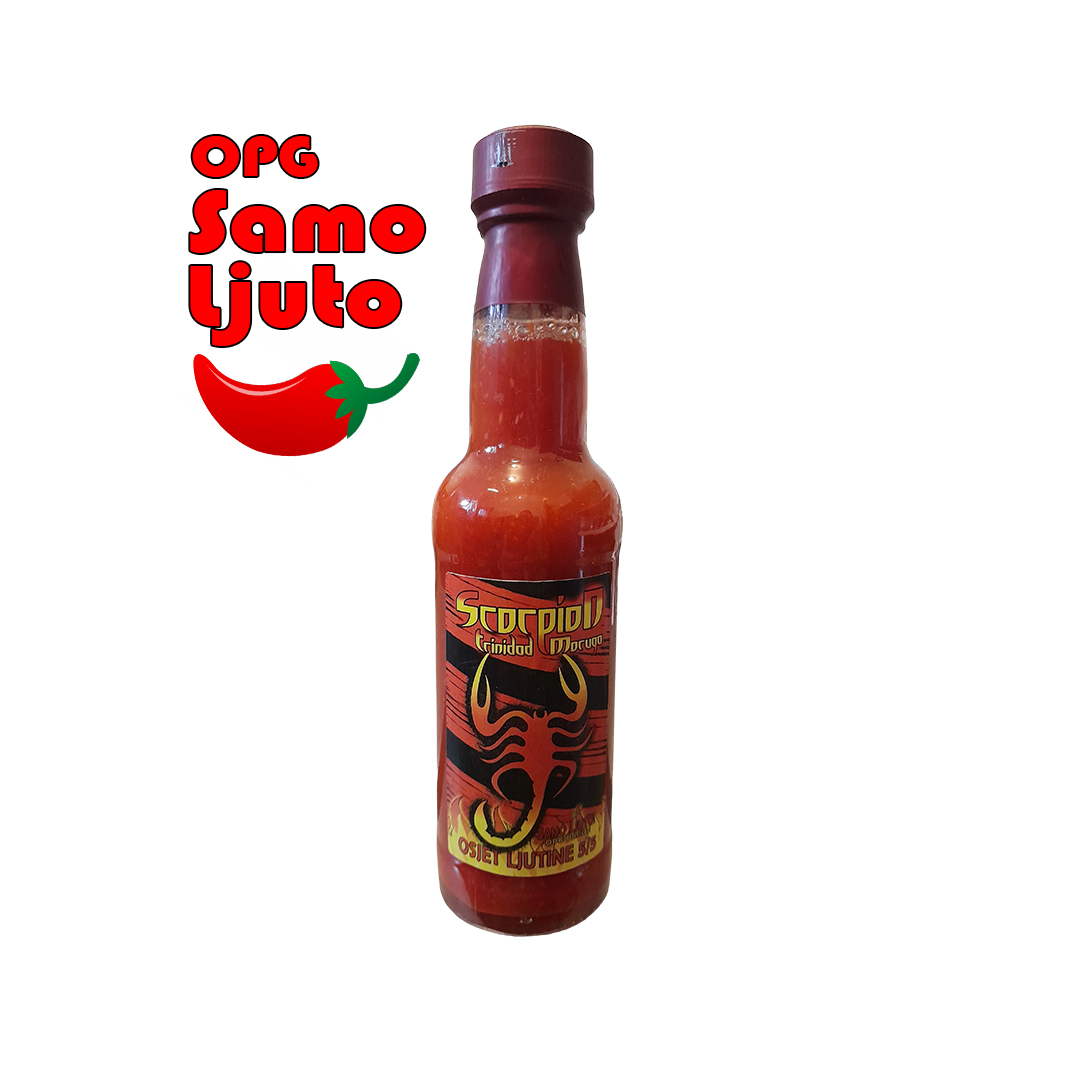 Trinidad Moruga Scorpion Yellow je izuzetno ljut chili umak od papričice Trinidad Moruga Scorpion Red je ekstremno ljuta papričica s ljutinom u rasponu od oko 1,2 do 2 milijuna Scoville jedinica.